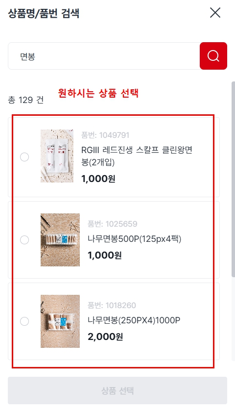 - 홈페이지 또는 앱에서 상품검색