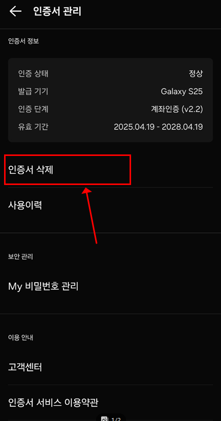 인증서 삭제 및 재발급은 어떻게 하나요?