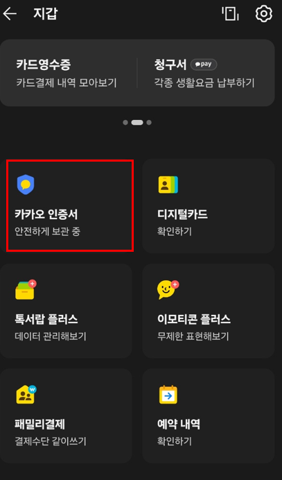 - 카카오지갑에서 인증서 항목 클릭
