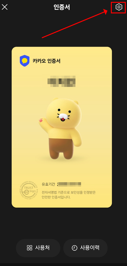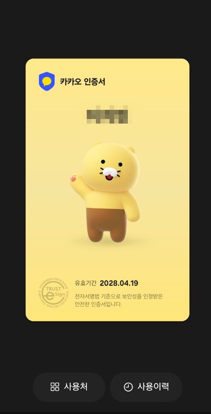 - 발급 완료 후, 카카오톡 내 인증서 탭에 등록 완료